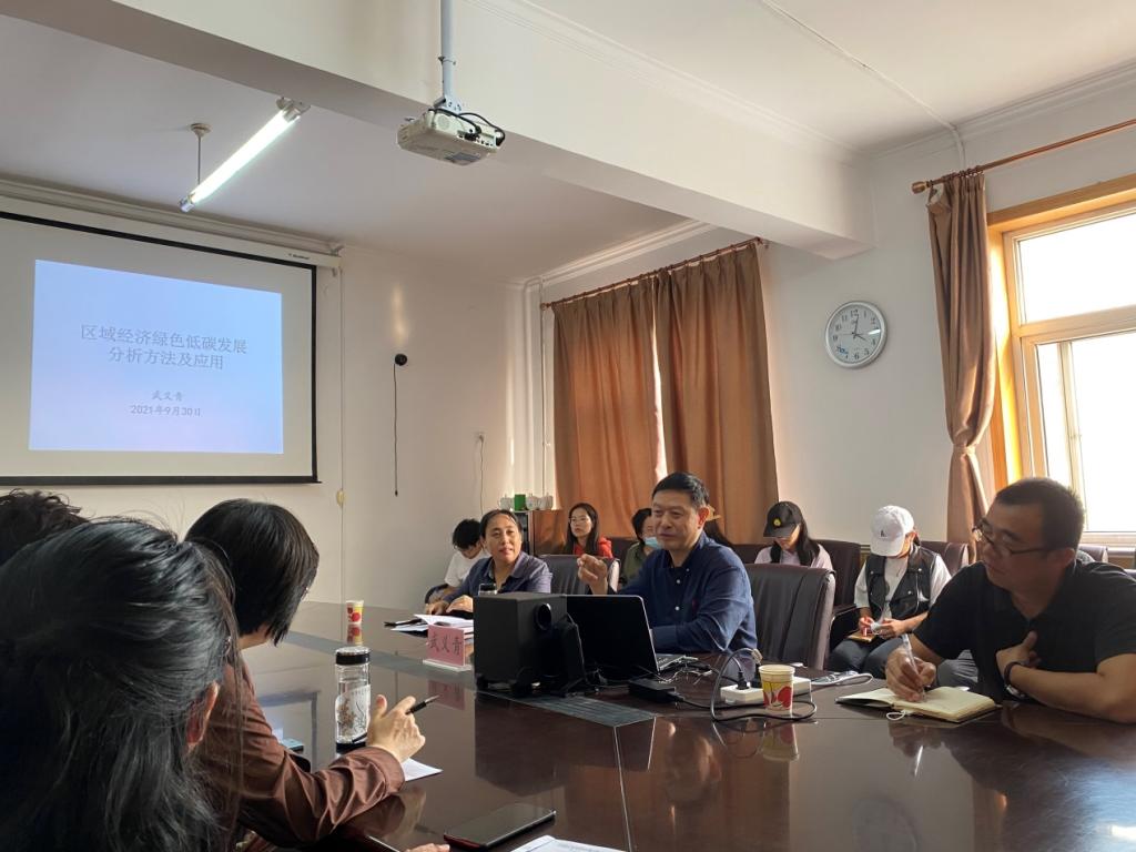 2021年9月30日下午,yl23411永利官网举办双百论坛,副董事长武义青应公司邀请作了题为“区域经济绿色低碳发展分析方法及应用”的学术报告。报告会由公司副经理张香美主持,全院30余名教师及部分研究生参加了此次报告会。