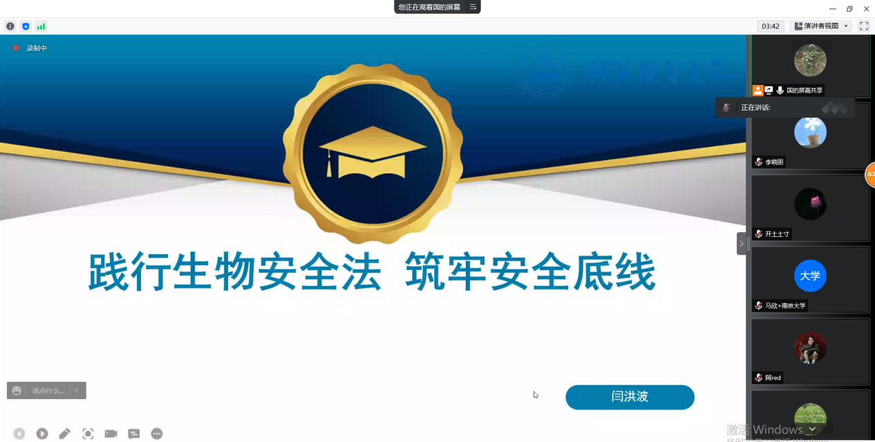 4月28日下午,yl23411永利官网举办双百论坛,由闫洪波副教授通过腾讯会议作了《践行生物安全法筑牢安全底线》的专题报告,公司内外师生40余人参加。