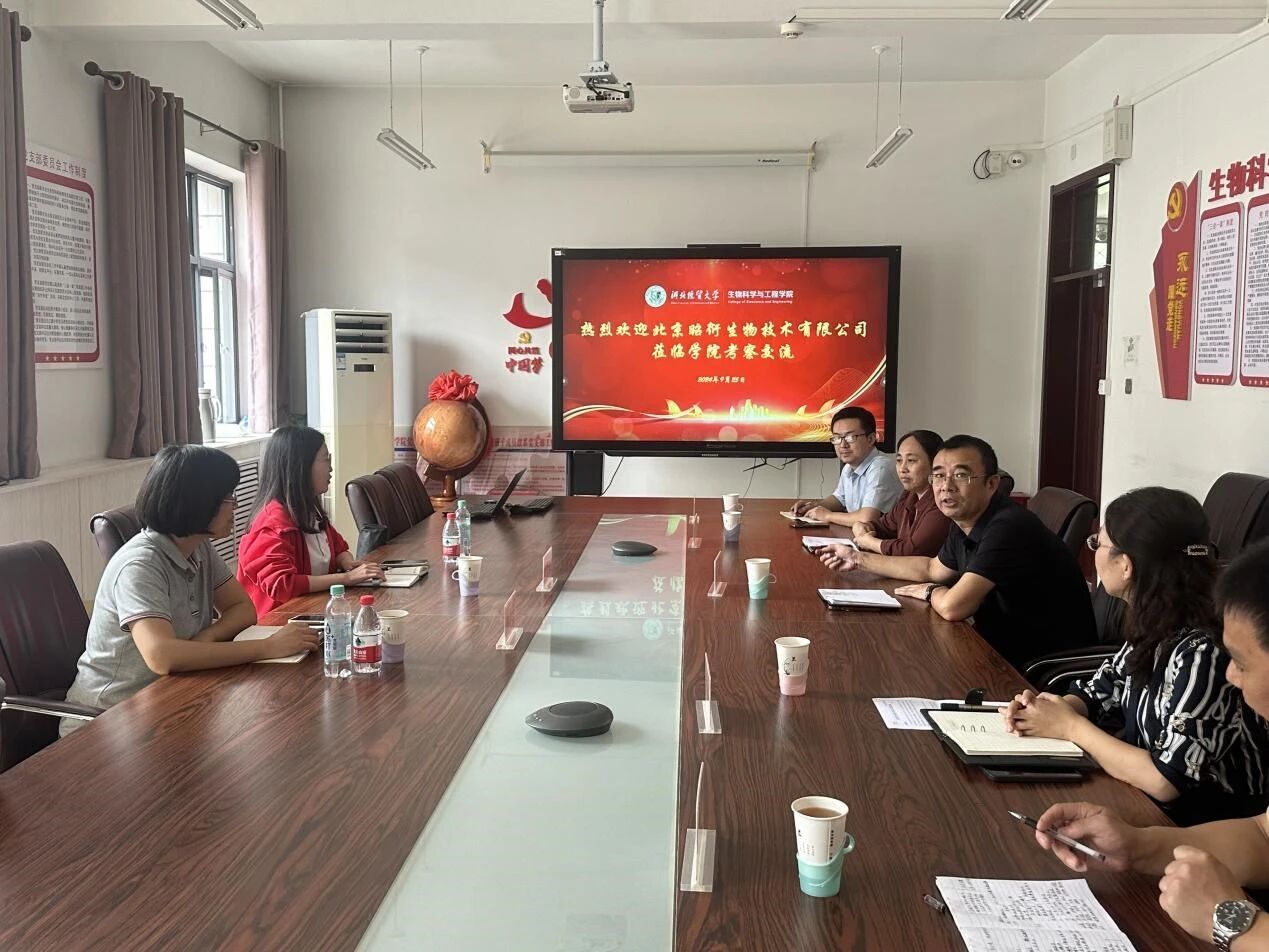 2024年9月25日下午,北京昭衍生物技术有限公司人力总监姚卓贤、招办主任闫繁荣来公司举行校企交流活动,公司党委书记周一纯、副书记付海玲、副经理张香美及部分老师参加活动。